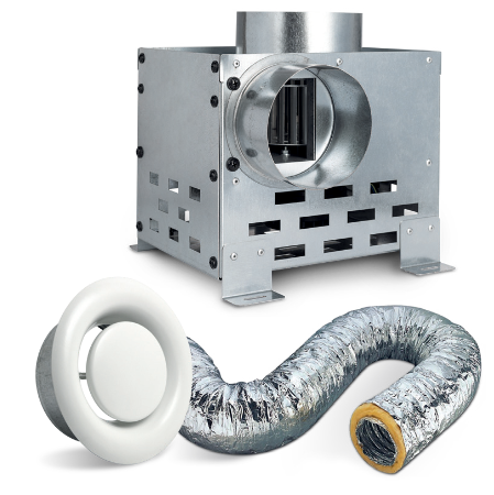 Ventilador de aire calienteEl AVALON permite conectar un ventilador para difundir el aire caliente por toda la casa y lograr una mejor distribución del calor.